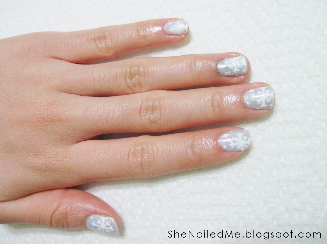 6. Make small X's and dots around the big snowflake. Seal with a top coat.